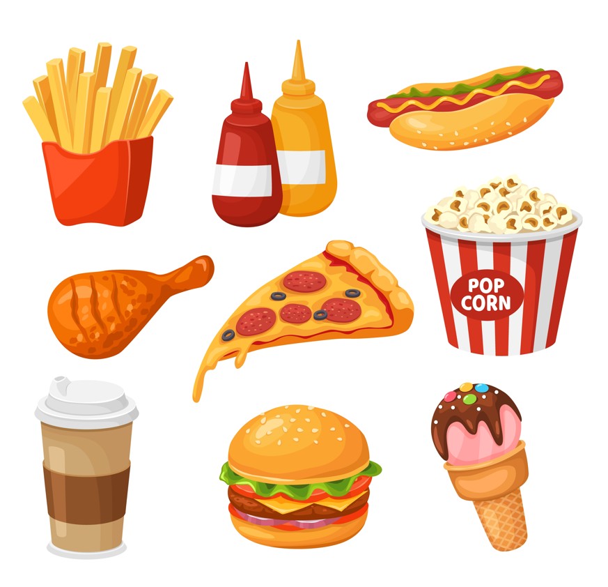Fødevarerne er ofte kemisk modificerede og kan indeholde tilsætningsstoffer som farvestoffer, smagsforstærkere, emulgatorer, kunstige sødemidler, fortykningsmidler og geleringsmidler.